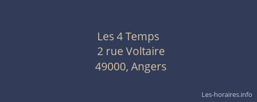 Voici les horaires de Les 4 Temps situé à Angers,