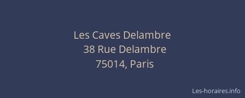 Voici les horaires de Les Caves Delambre situé à Paris 14ème,