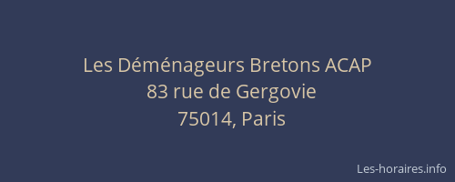 Voici les horaires de Les Déménageurs Bretons ACAP situé à Paris 14ème,