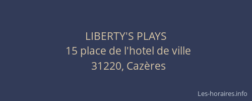 Voici les horaires de LIBERTY'S PLAYS situé à Cazères,