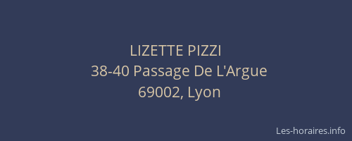Voici les horaires de LIZETTE PIZZI situé à Lyon 2ème,