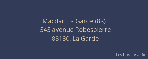 Voici les horaires de Macdan (83) situé à La Garde,