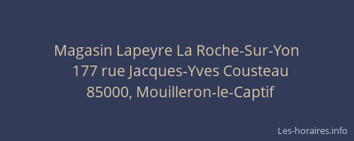 Voici les horaires de Magasin Lapeyre La Roche-Sur-Yon situé à Mouilleron-le-Captif,