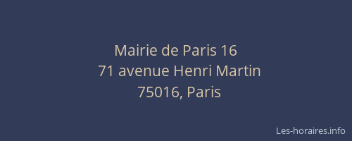 Voici les horaires de Mairie de 16 situé à Paris,