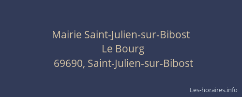 Voici les horaires de Mairie situé à Saint-Julien-sur-Bibost,