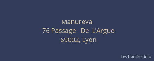 Voici les horaires de Manureva situé à Lyon 2ème,