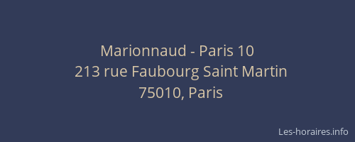 Voici les horaires de Marionnaud - 10 situé à Paris,