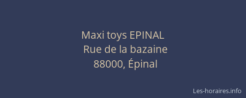 Voici les horaires de Maxi toys EPINAL situé à Épinal,