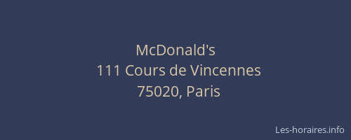 Voici les horaires de McDonald's situé à Paris 20ème,