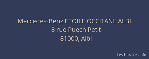Voici les horaires de Mercedes-Benz ETOILE OCCITANE ALBI situé à Albi,