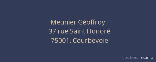 Vous pouvez renseigner les horaires Meunier Géoffroy situé à Courbevoie,