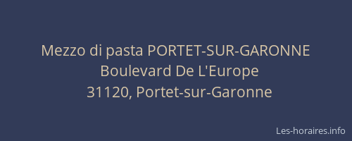 Voici les horaires de Mezzo di pasta PORTET-SUR-GARONNE situé à Portet-sur-Garonne,