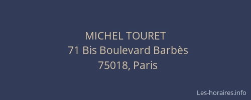 Voici les horaires de MICHEL TOURET situé à Paris 18ème,