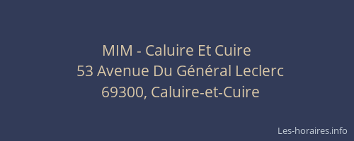 Voici les horaires de MIM - Caluire Et Cuire situé à Caluire-et-Cuire,
