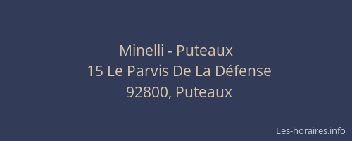 Voici les horaires de Minelli - situé à Puteaux,