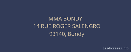 Voici les horaires de MMA BONDY situé à Bondy,