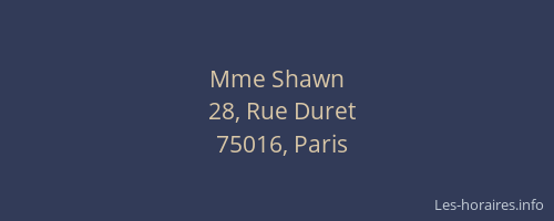 Voici les horaires de Mme Shawn situé à Paris 16ème,