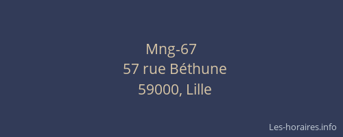 Voici les horaires de Mng-67 situé à Lille,