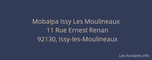 Voici les horaires de Mobalpa Issy Les Moulineaux situé à Issy-les-Moulineaux,