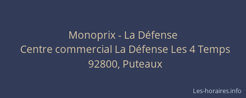 Voici les horaires de Monoprix - La Défense situé à Puteaux,
