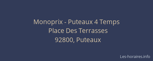 Voici les horaires de Monoprix - 4 Temps situé à Puteaux,