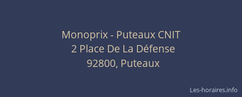 Voici les horaires de Monoprix - CNIT situé à Puteaux,