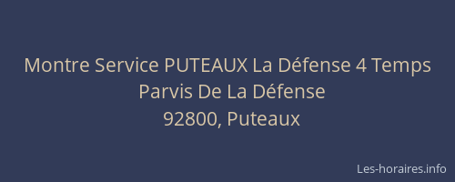 Voici les horaires de Montre Service PUTEAUX La Défense 4 Temps situé à Puteaux,