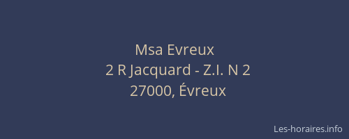 Voici les horaires de Msa Evreux situé à Évreux,