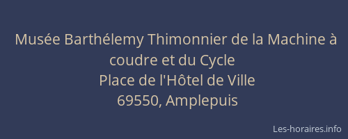 Voici les horaires de Musée Barthélemy Thimonnier de la Machine à coudre et du Cycle situé à Amplepuis,
