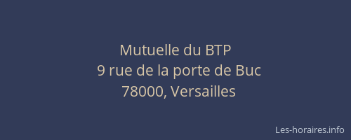 Vous pouvez renseigner les horaires Mutuelle du BTP situé à Versailles,