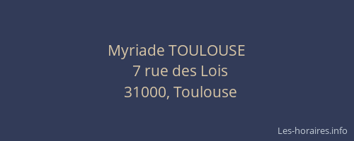 Voici les horaires de Myriade TOULOUSE situé à Toulouse,