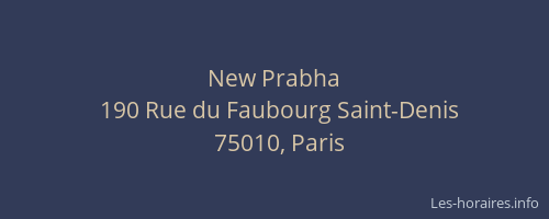 Voici les horaires de New Prabha situé à Paris 10ème,