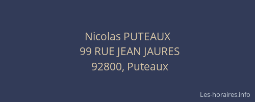 Voici les horaires de Nicolas PUTEAUX situé à Puteaux,