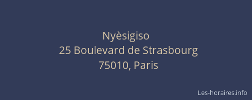 Vous pouvez renseigner les horaires Nyèsigiso situé à Paris 10ème,