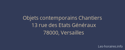 Vous pouvez renseigner les horaires Objets contemporains Chantiers situé à Versailles,