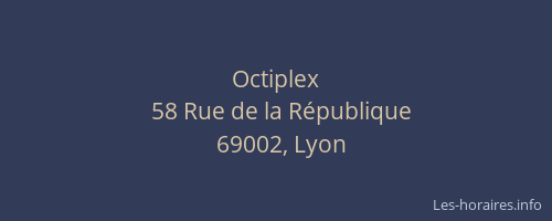 Vous pouvez renseigner les horaires Octiplex situé à Lyon 2ème,