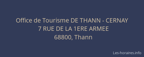 Voici les horaires de Office de Tourisme DE THANN - CERNAY situé à Thann,