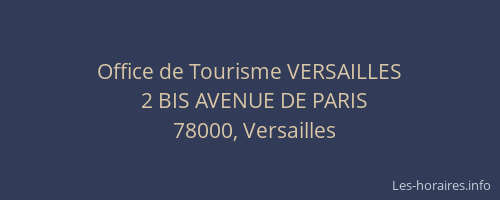 Voici les horaires de Office de Tourisme VERSAILLES situé à Versailles,