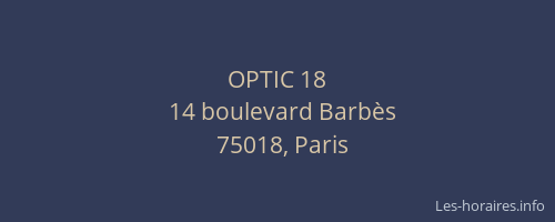 Voici les horaires de OPTIC 18 situé à Paris 18ème,