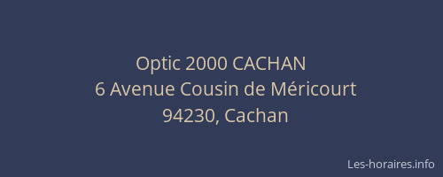 Voici les horaires de Optic 2000 CACHAN situé à Cachan,