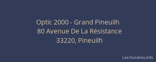 Voici les horaires de Optic 2000 - Grand situé à Pineuilh,