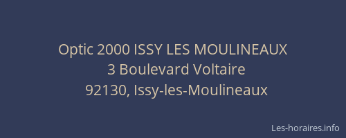 Voici les horaires de Optic 2000 ISSY LES MOULINEAUX situé à Issy-les-Moulineaux,