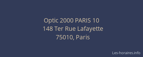Voici les horaires de Optic 2000 PARIS 10 situé à Paris,