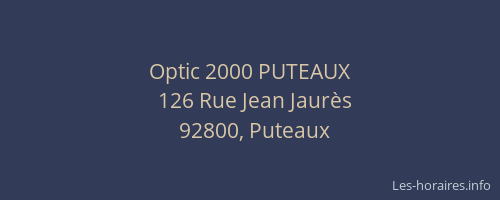 Voici les horaires de Optic 2000 PUTEAUX situé à Puteaux,