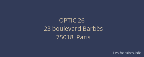 Vous pouvez renseigner les horaires OPTIC 26 situé à Paris 18ème,