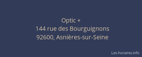 Voici les horaires de Optic + situé à Asnières-sur-Seine,