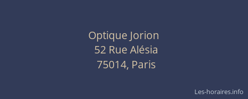 Voici les horaires de Optique Jorion situé à Paris 14ème,