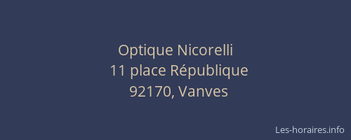 Voici les horaires de Optique Nicorelli situé à Vanves,