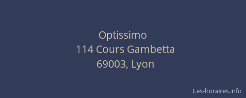 Voici les horaires de Optissimo situé à Lyon 3ème,