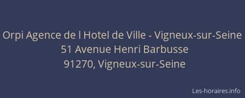 Voici les horaires de Orpi Agence de l Hotel de Ville - situé à Vigneux-sur-Seine,